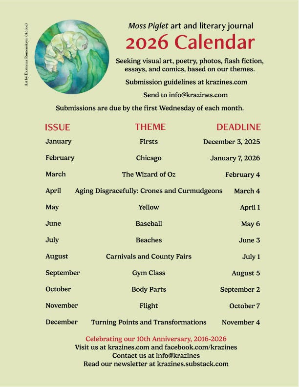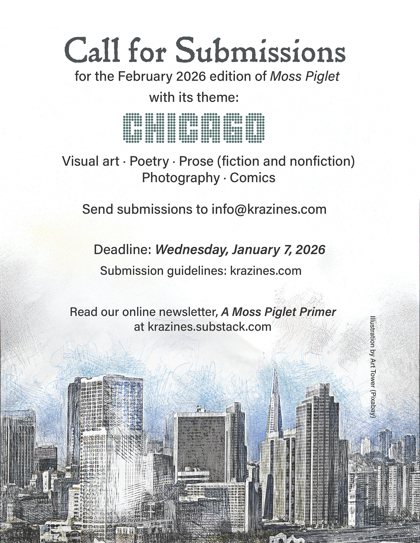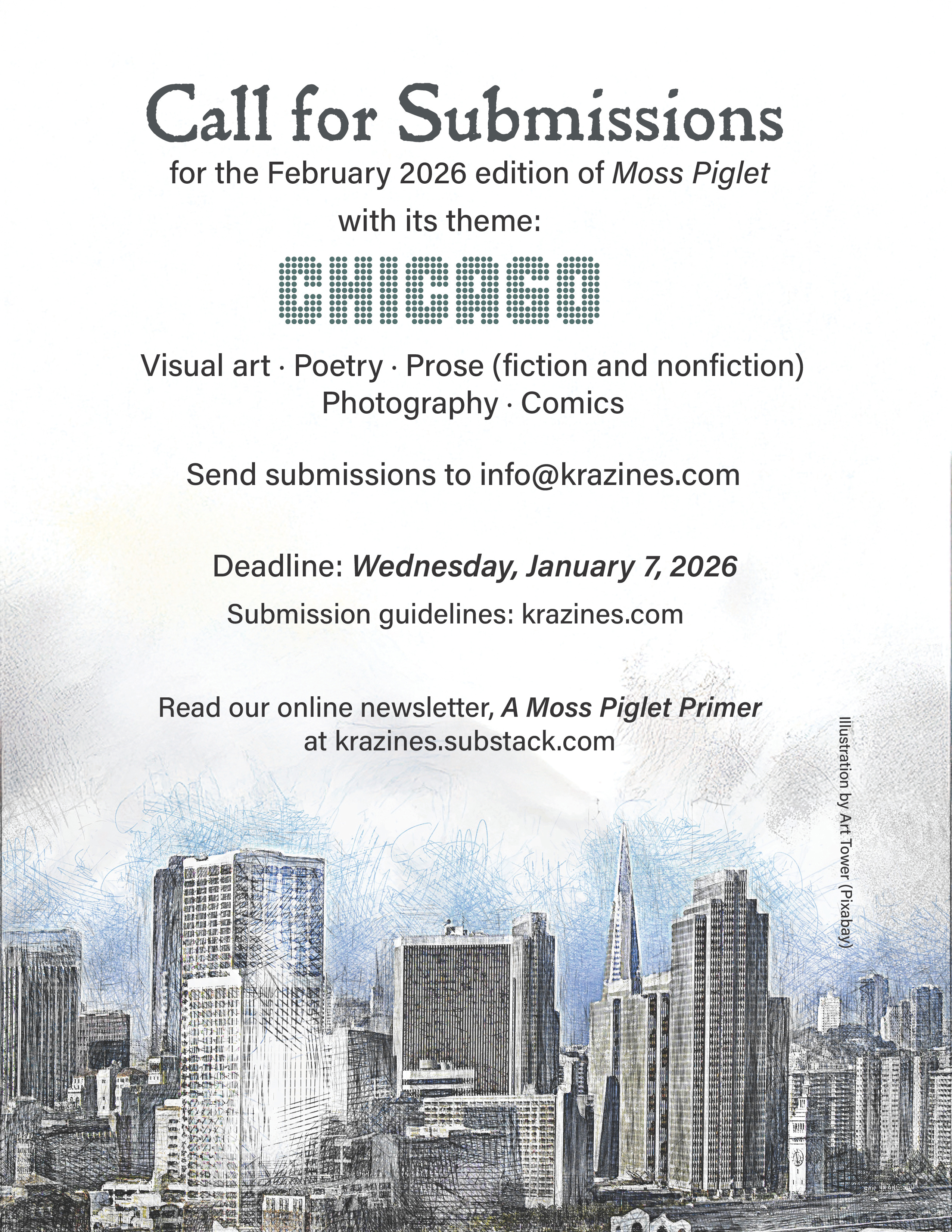 In the last issue (Dec 1, 2025) of this newsletter, the Call for Submissions flyer for the Chicago-themed issue of Moss Piglet contained the wrong deadline date.